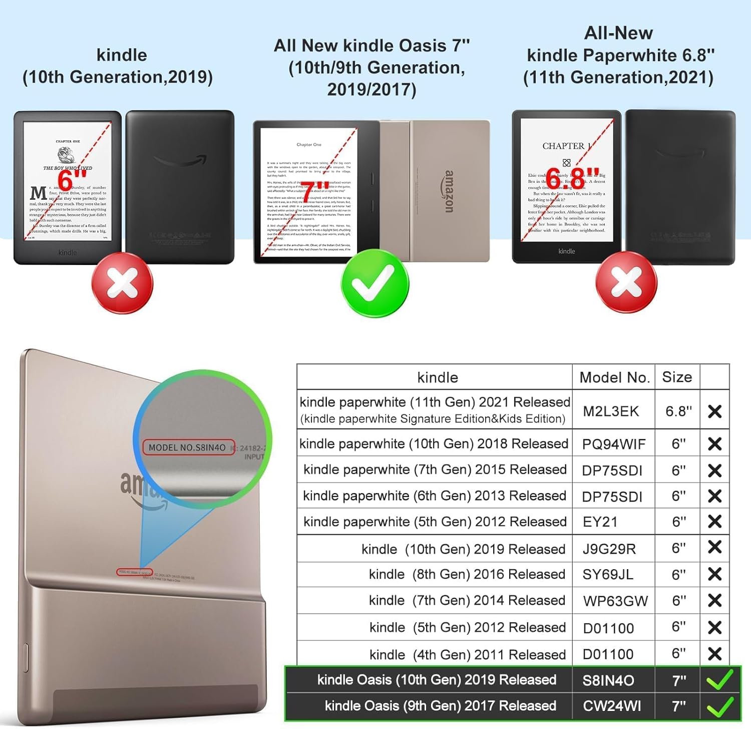 1.Compatible Model:Expertly designed to 7 Inch Kindle Oasis (10th Generation,2019 and 9th Generation,2017), ensuring a snug and secure fit,Not compatible with other models